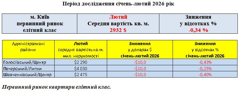 ПЕРВИННИЙ РИНОК ЖИТЛОВОЇ НЕРУХОМОСТІ ЄЛІТНИЙ КЛАС, МІСТО КИЇВ, ЛЮТИЙ 2026 РІК