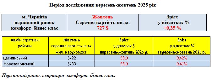 ПЕРВИННИЙ РИНОК ЖИТЛОВОЇ НЕРУХОМОСТІ КОМФОРТ БІЗНЕС КЛАС, МІСТО ЧЕРНІГІВ, ЖОВТЕНЬ 2025 РІК