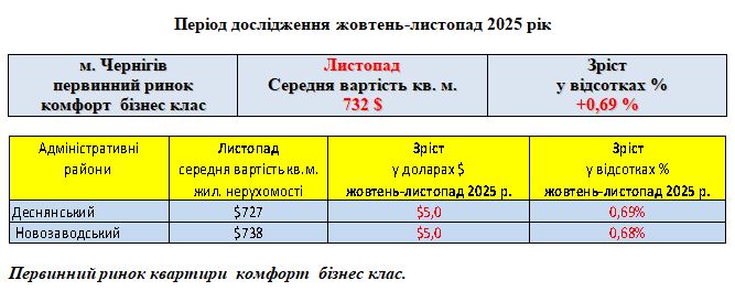 ПЕРВИННИЙ РИНОК ЖИТЛОВОЇ НЕРУХОМОСТІ КОМФОРТ БІЗНЕС КЛАС, МІСТО ЧЕРНІГІВ, ЛИСТОПАД 2025 РІК