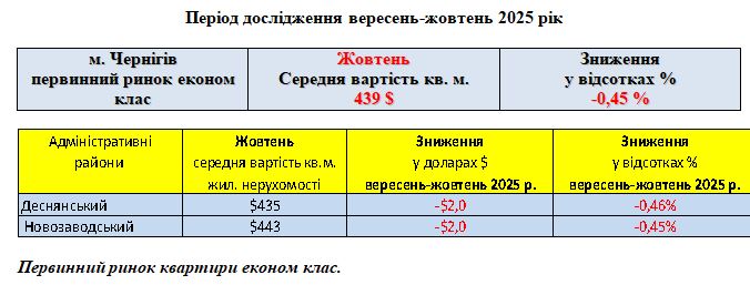 ПЕРВИННИЙ РИНОК ЖИТЛОВОЇ НЕРУХОМОСТІ ЕКОНОМ КЛАС, МІСТО ЧЕРНІГІВ, ЖОВТЕНЬ 2025 РІК