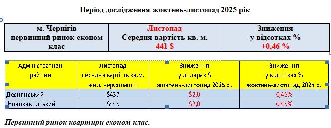 ПЕРВИННИЙ РИНОК ЖИТЛОВОЇ НЕРУХОМОСТІ ЕКОНОМ КЛАС, МІСТО ЧЕРНІГІВ, ЛИСТОПАД 2025 РІК