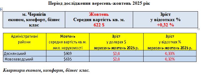 РИНОК ЖИТЛОВОЇ НЕРУХОМОСТІ ЕКОНОМ, КОМФОРТ, БІЗНЕС КЛАС, МІСТО ЧЕРНІГІВ, ЖОВТЕНЬ 2025 РІК