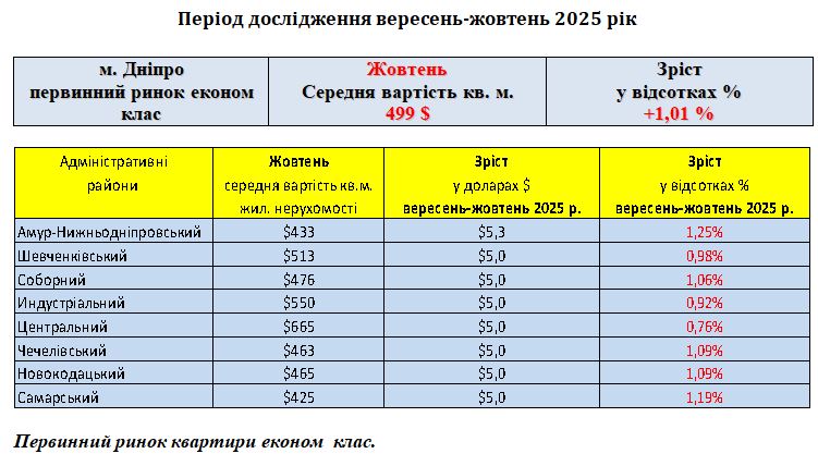 ПЕРВИННИЙ РИНОК ЖИТЛОВОЇ НЕРУХОМОСТІ ЕКОНОМ КЛАС, МІСТО ДНІПРО, ЖОВТЕНЬ 2025 РІК