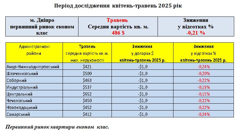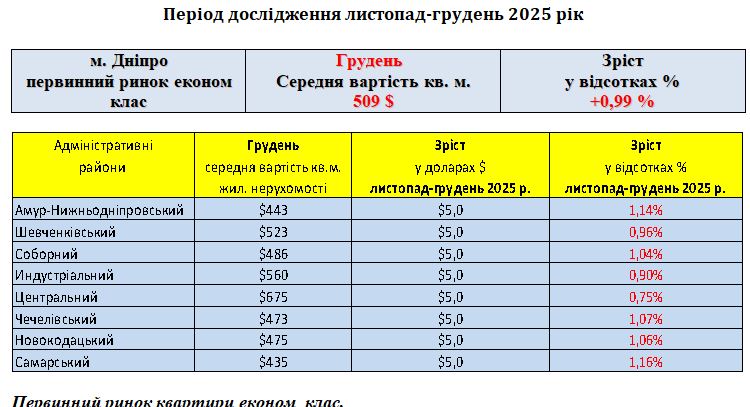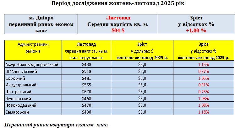 ПЕРВИННИЙ РИНОК ЖИТЛОВОЇ НЕРУХОМОСТІ ЕКОНОМ КЛАС, МІСТО ДНІПРО, ЛИСТОПАД 2025 РІК