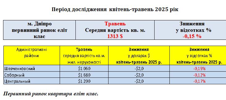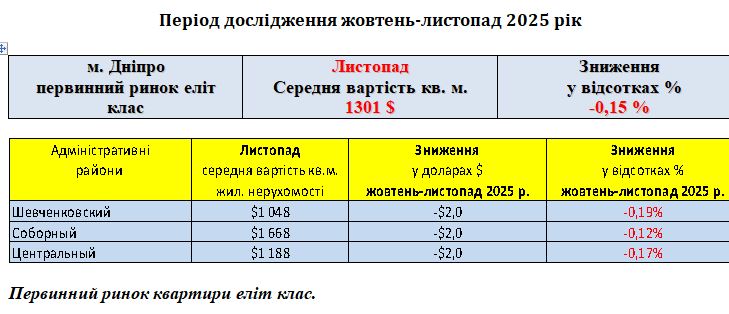 ПЕРВИННИЙ РИНОК ЖИТЛОВОЇ НЕРУХОМОСТІ ЕЛІТ КЛАС, МІСТО ДНІПРО, ЛИСТОПАД 2025 РІК