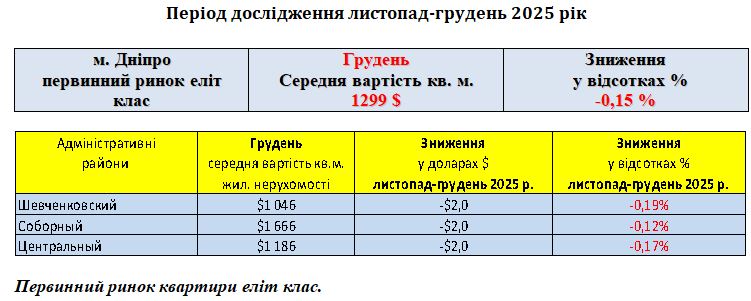 ПЕРВИННИЙ РИНОК ЖИТЛОВОЇ НЕРУХОМОСТІ ЕЛІТ КЛАС, МІСТО ДНІПРО, ГРУДЕНЬ 2025 РІК