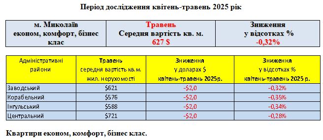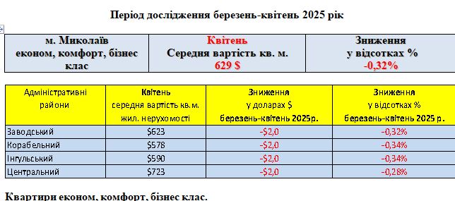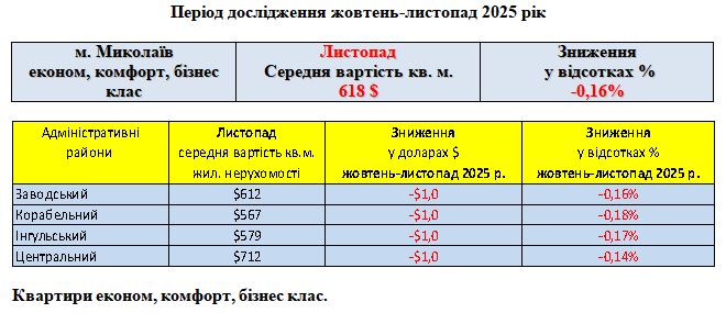 РИНОК ЖИТЛОВОЇ НЕРУХОМОСТІ ЕКОНОМ, КОМФОРТ, БІЗНЕС КЛАС, МІСТО МИКОЛАЇВ, ЛИСТОПАД 2025 РІК