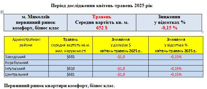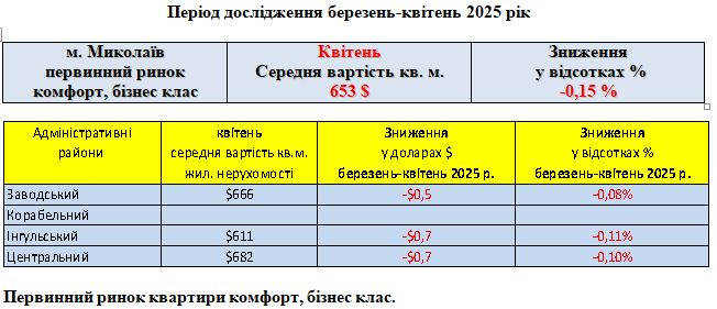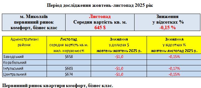 ПЕРВИННИЙ РИНОК ЖИТЛОВОЇ НЕРУХОМОСТІ КОМФОРТ, БІЗНЕС КЛАС, МІСТО МИКОЛАЇВ, ЛИСТОПАД 2025 РІК