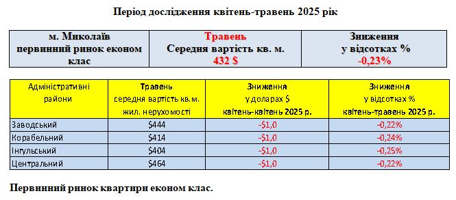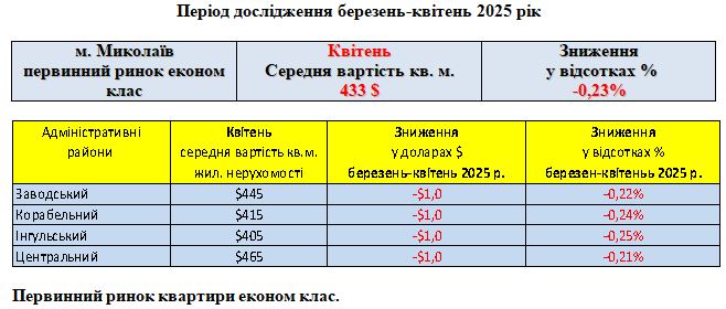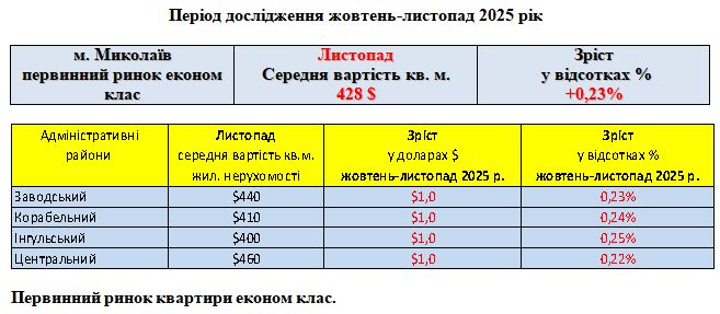 ПЕРВИННИЙ РИНОК ЖИТЛОВОЇ НЕРУХОМОСТІ ЕКОНОМ КЛАС, МІСТО МИКОЛАЇВ, ЛИСТОПАД 2025 РІК