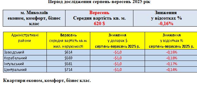 РИНОК ЖИТЛОВОЇ НЕРУХОМОСТІ ЕКОНОМ, КОМФОРТ, БІЗНЕС КЛАС, МІСТО МИКОЛАЇВ, ВЕРЕСЕНЬ 2025 РІК