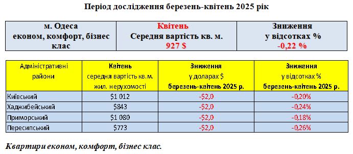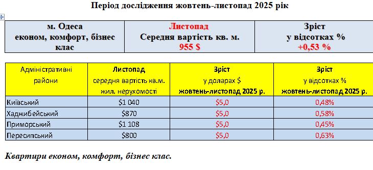 РИНОК ЖИТЛОВОЇ НЕРУХОМОСТІ ЕКОНОМ, КОМФОРТ, БІЗНЕС КЛАС, МІСТО ОДЕСА, ЛИСТОПАД 2025 РІК