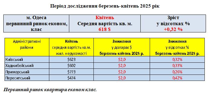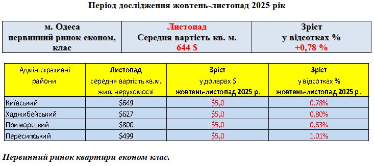 ПЕРВИННИЙ РИНОК ЖИТЛОВОЇ НЕРУХОМОСТІ ЕКОНОМ КЛАС, МІСТО ОДЕСА, ЛИСТОПАД 2025 РІК