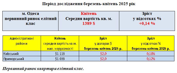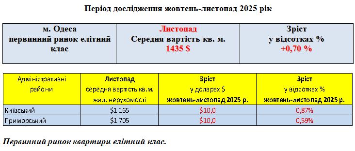 ПЕРВИННИЙ РИНОК ЖИТЛОВОЇ НЕРУХОМОСТІ ЄЛИТ КЛАС, МІСТО ОДЕСА, ЛИСТОПАД 2025 РІК