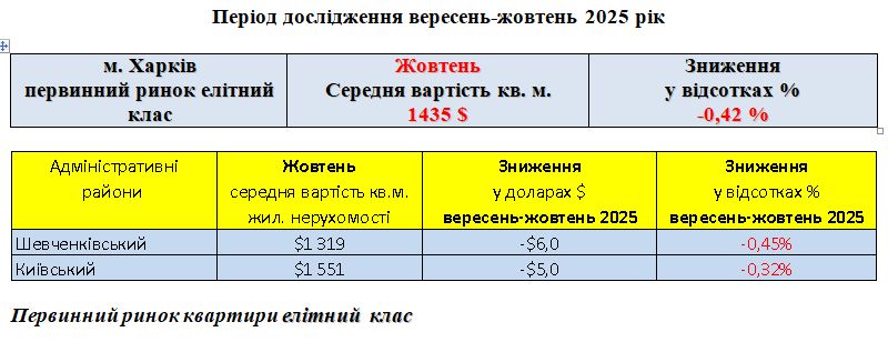 ПЕРВИННИЙ РИНОК ЖИТЛОВОЇ НЕРУХОМОСТІ ЄЛІТНИЙ КЛАС, МІСТО ХАРКІВ, ЖОВТЕНЬ 2025 РІК