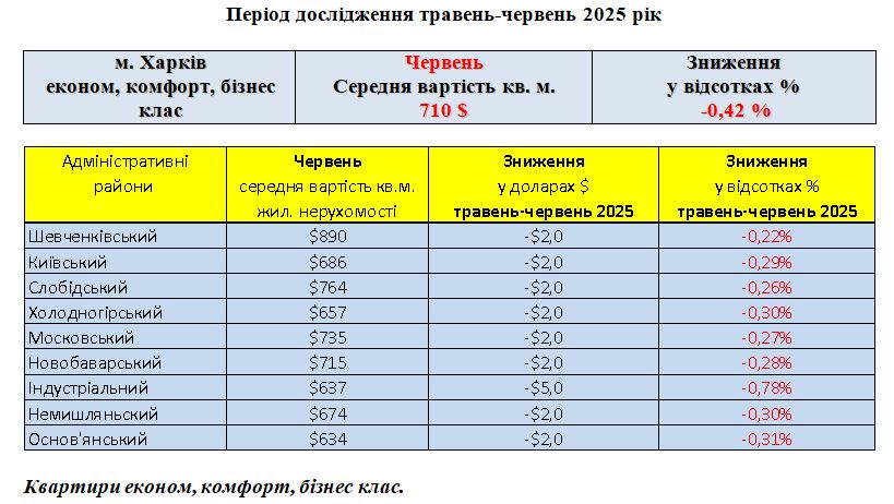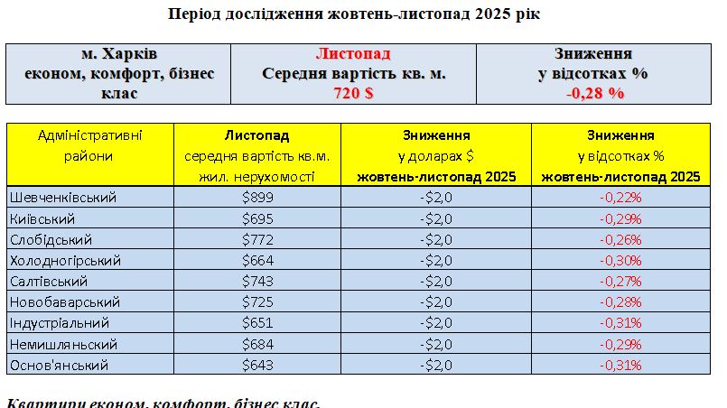 РИНОК ЖИТЛОВОЇ НЕРУХОМОСТІ ЕКОНОМ, КОМФОРТ, БІЗНЕС КЛАС, МІСТО ХАРКІВ, ЛИСТОПАД 2025 РІК