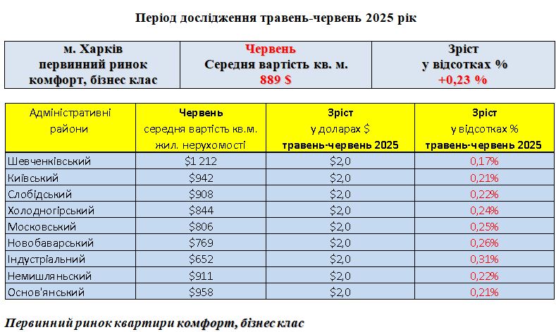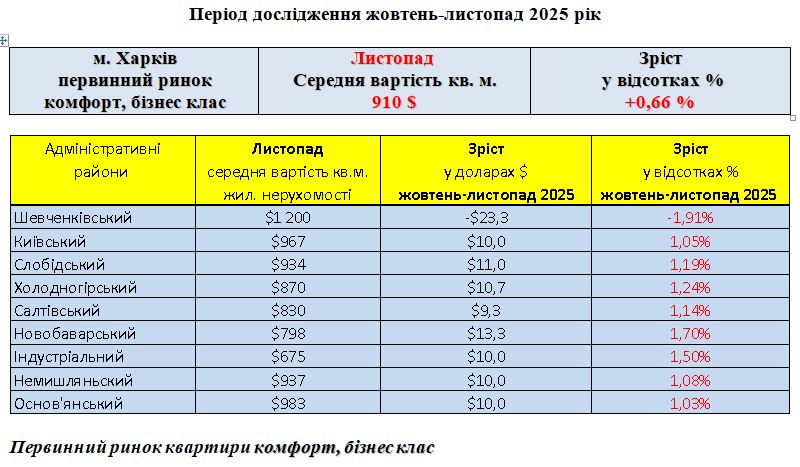 ПЕРВИННИЙ РИНОК ЖИТЛОВОЇ НЕРУХОМОСТІ КОМФОРТ, БІЗНЕС КЛАС, МІСТО ХАРКІВ, ЛИСТОПАД 2025 РІК