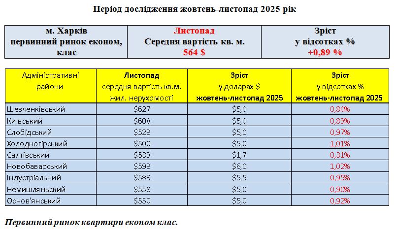 ПЕРВИННИЙ РИНОК ЖИТЛОВОЇ НЕРУХОМОСТІ ЕКОНОМ КЛАС, МІСТО ХАРКІВ, ЛИСТОПАД 2025 РІК