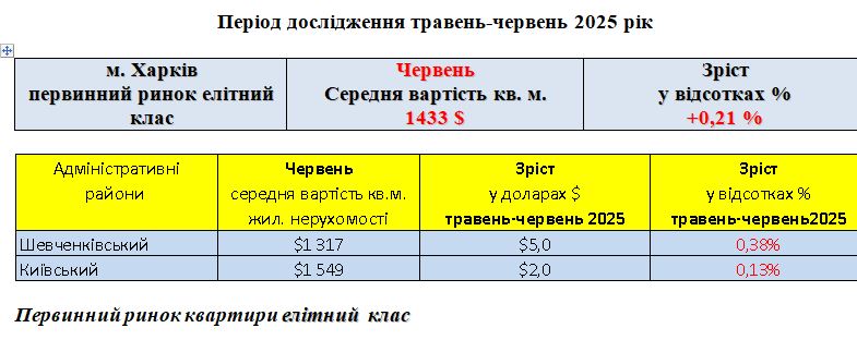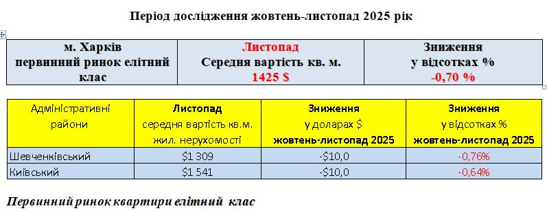 ПЕРВИННИЙ РИНОК ЖИТЛОВОЇ НЕРУХОМОСТІ ЄЛІТНИЙ КЛАС, МІСТО ХАРКІВ, ЛИСТОПАД 2025 РІК