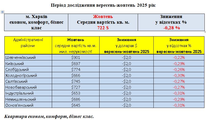 РИНОК ЖИТЛОВОЇ НЕРУХОМОСТІ ЕКОНОМ, КОМФОРТ, БІЗНЕС КЛАС, МІСТО ХАРКІВ, ЖОВТЕНЬ 2025 РІК