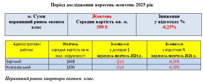 ПЕРВИННИЙ РИНОК ЖИТЛОВОЇ НЕРУХОМОСТІ ЕКОНОМ КЛАС, МІСТО СУМИ, ЖОВТЕНЬ 2025 РІК