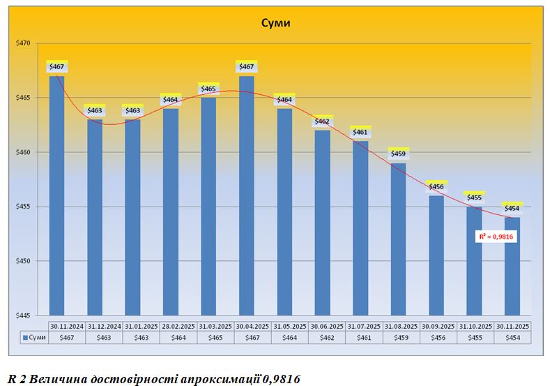 Середня вартість квадратного метру житлової нерухомості на вторинному ринку (соціальне житло) в місті Суми за період з 30 листопада 2024 року, по 30 листопада 2025 року знизилася в відносних величинах –2,79 %.