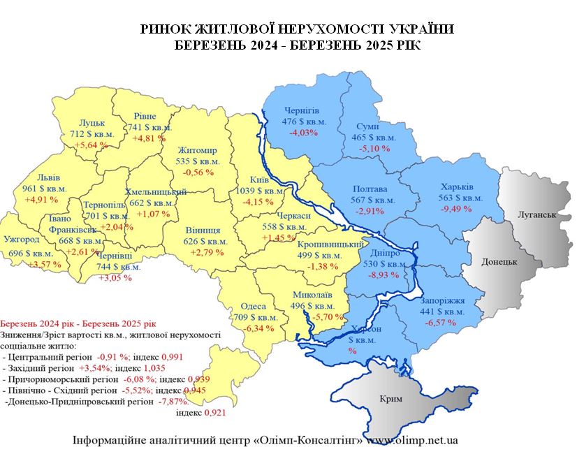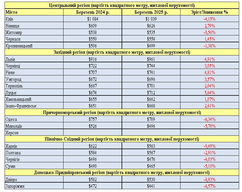 Лідером зниження середньої вартості квадратного метру житлової нерухомості в Північно-Східному регіоні за минулі дванадцять місяців, є місто Суми -4,20 %.